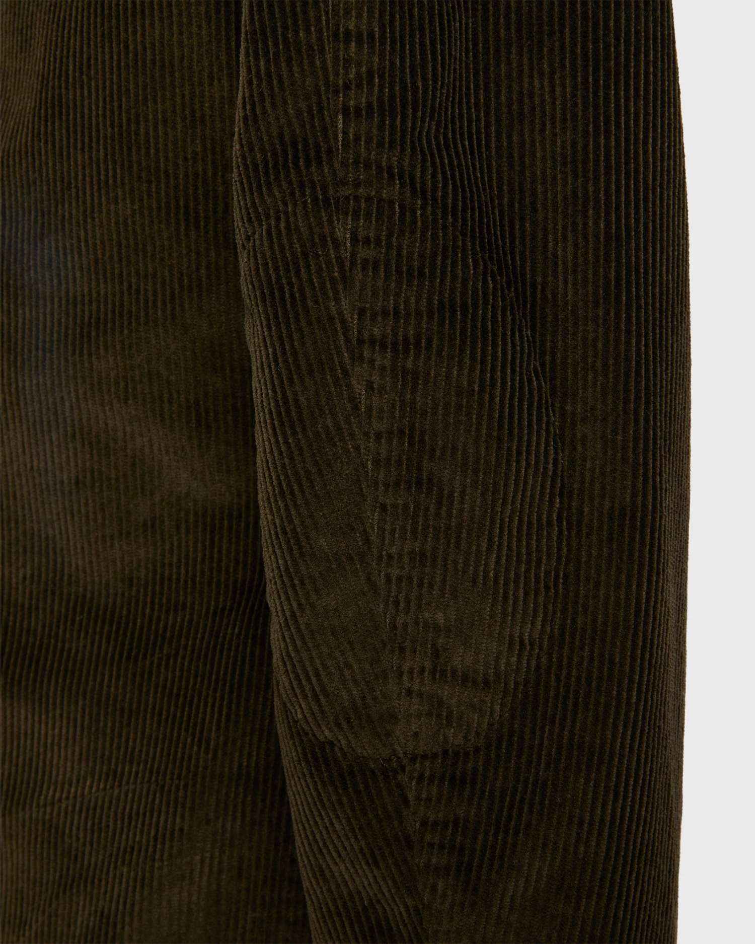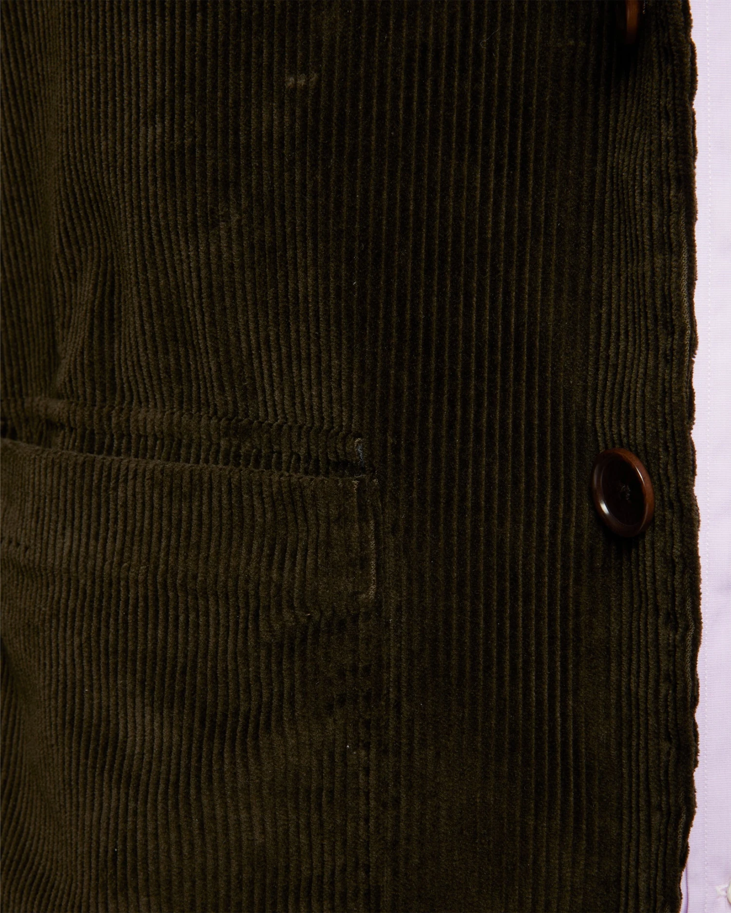 Somewhere between a chore coat and a blazer, the Butcher might be the easiest jacket we make. This one’s made from a super-rich Italian cotton corduroy and garment-dyed to a deep, dark shade of chocolate brown. It’s unlined and unconstructed, with a natural shoulder and pickstitched spalla camicia shirtsleeve construction. The pockets on the front are special, too: we designed them so that you can tuck in the flaps (without looking like you just tucked in the flaps) for a more open look. There are even reinforced elbow patches to really drive the “casual” thing home. The fit of the Butcher is easy, with a touch more room in the body than our tailored jackets. And while it looks great styled casually, we made a pair of matching trousers so you can also wear it as a full suit.