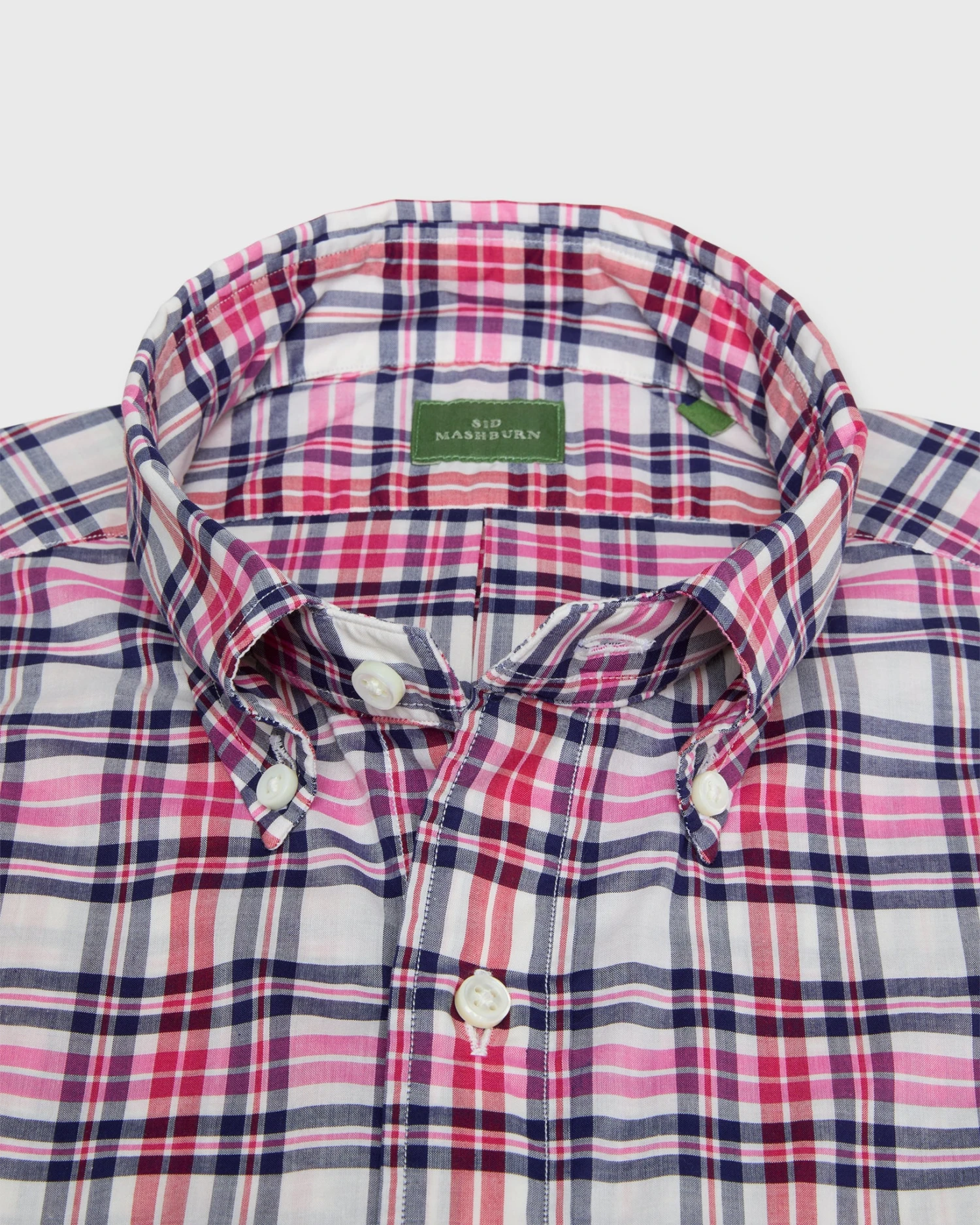 A pretty perfect warm-weather sport shirt. It’s got a soft, nonfused button-down collar with just the right amount of “bloom” and an extra button at the back of the collar, which is an old-school detail originally designed to keep your tie in place… but we just like the way it looks. As always, the cut is slim but never skinny, with a high armhole for mobility and a long-enough-to-stay-tucked-in shirttail. (Sid likes it this way, but you can always get it shortened.) It’s made with single-needle stitching, 22 stitches/inch, flat-felled seams, and thick, 3.5mm Trocas shell buttons.