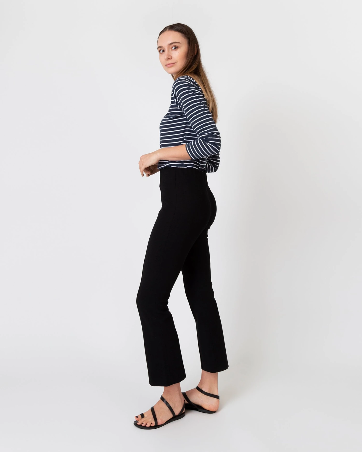 Faye Flare Cropped Pant In Black Waffle Crepe