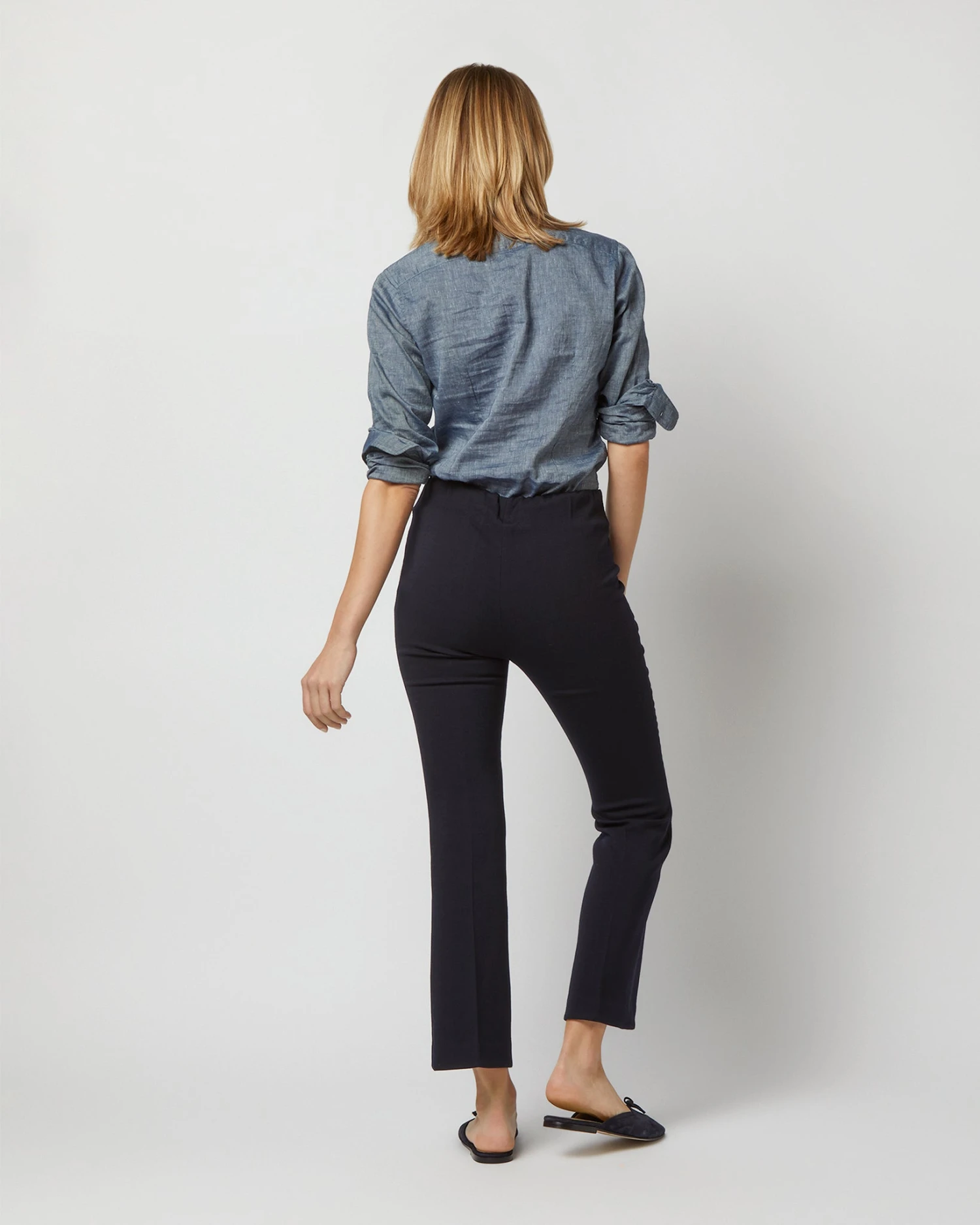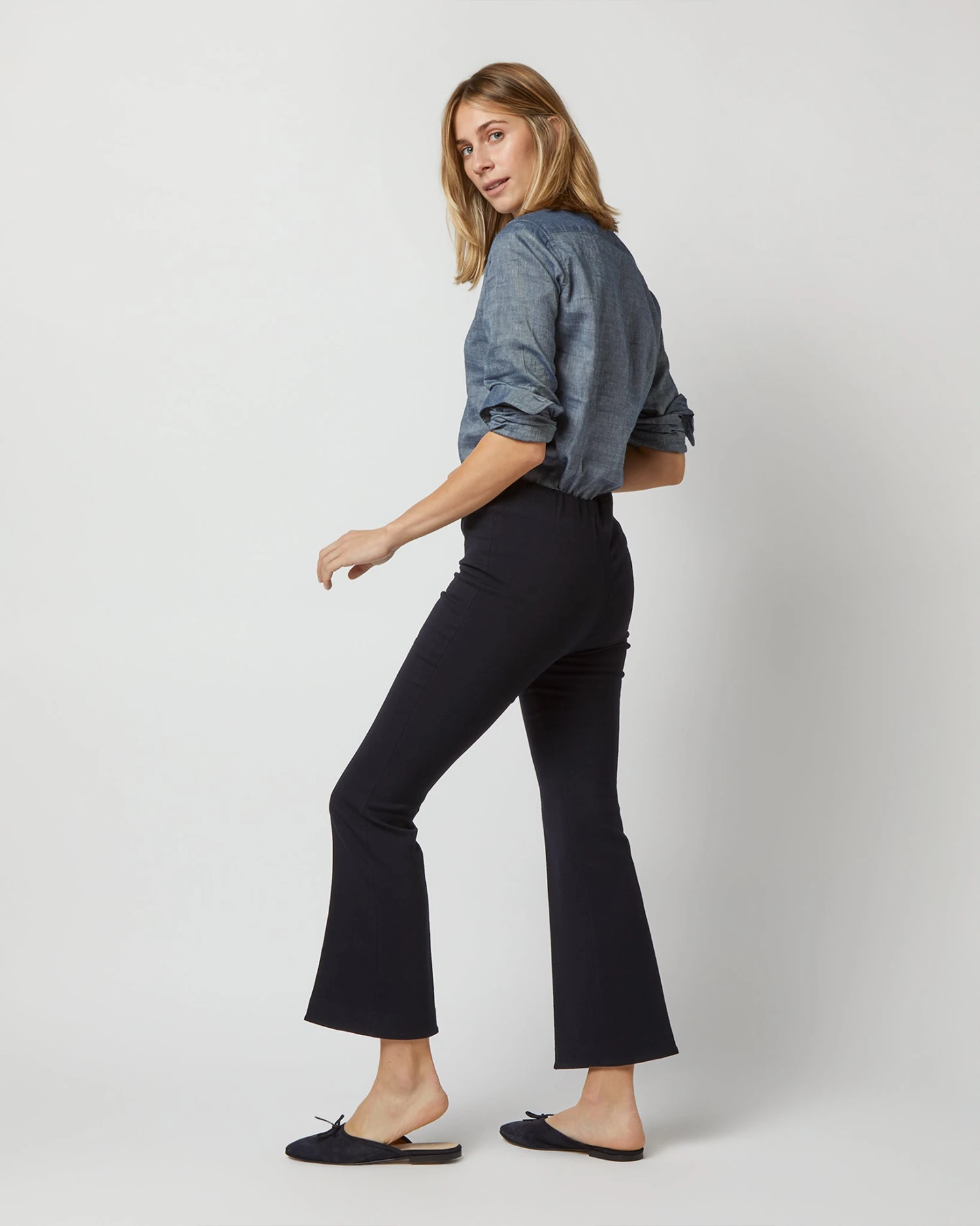 Minimal, clean, and quietly chic: the Faye is a refined pant without all the fuss. It just pulls on. This pair is cropped to an above-the-ankle length, with a little kick flare. These in particular are made from luxe, Italian double-weave wool… trust us when we say that an elastic waist has never looked so elevated. There’s even a matching top so you can make it a head-to-toe look.