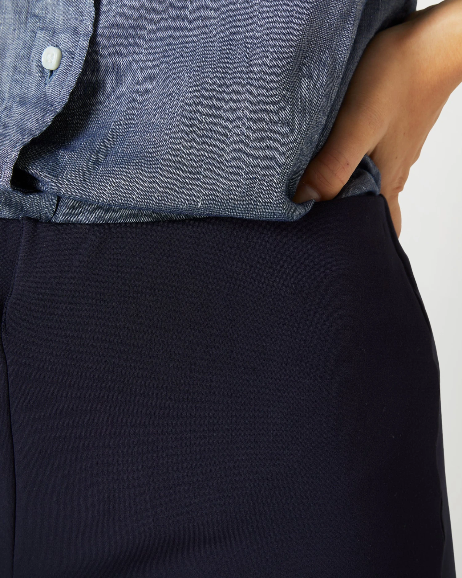 Minimal, clean, and quietly chic: our Faye shape is a refined pant without all the fuss. It just pulls on, with an elastic waist that doesn’t scream “elastic waist” and a kick flare that’s cropped to an above-the-ankle length. This particular pair is our go-to, made of a lush, stretchy ponte knit that holds you in a bit and feels really good against the skin. Add a sweater and a scarf for an instant plane (or anywhere else) outfit.