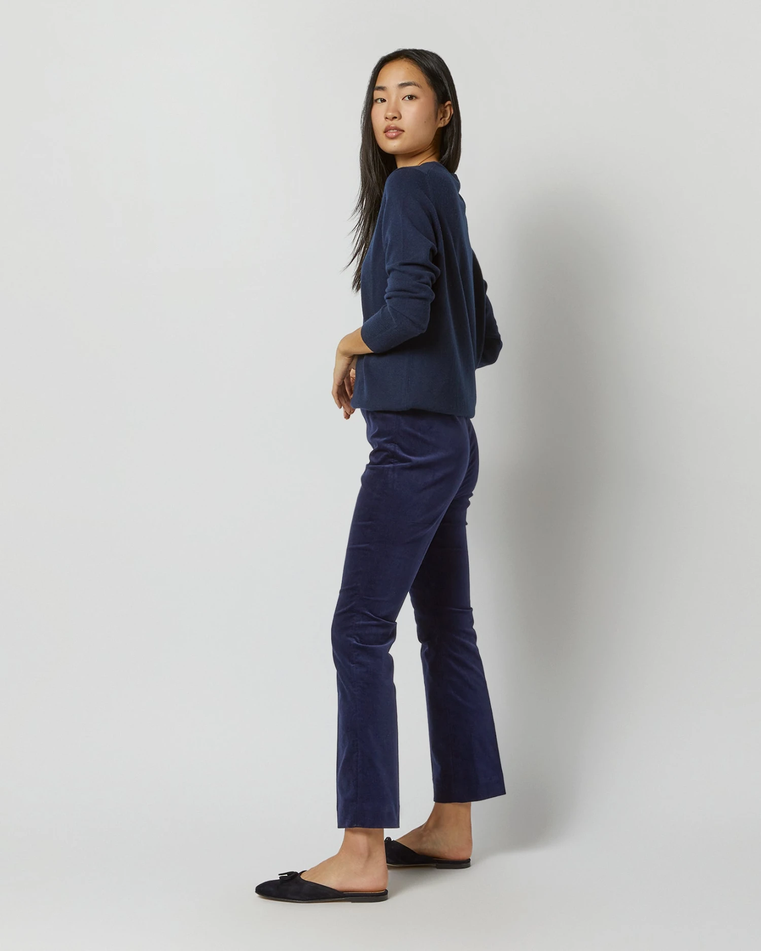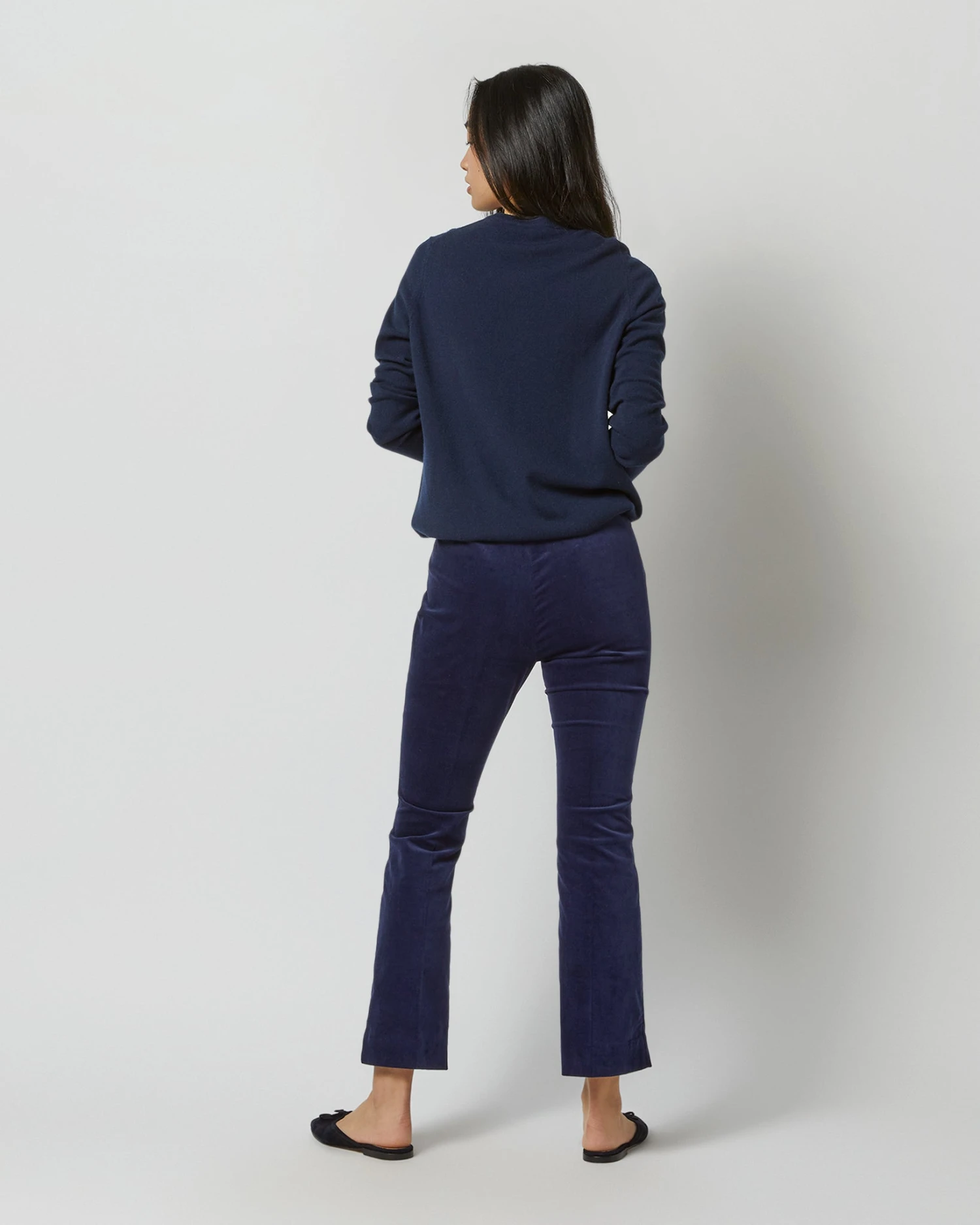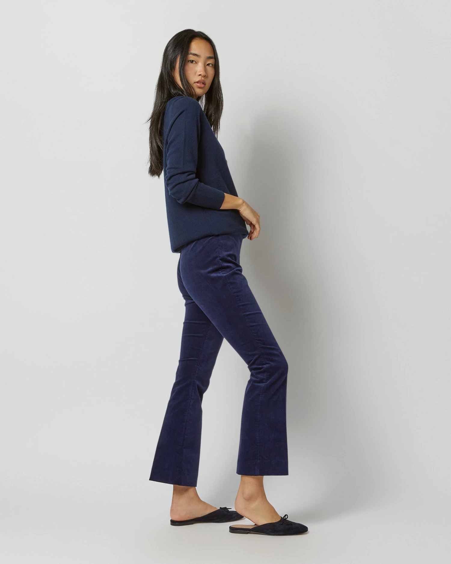Faye Flare Cropped Pant In Navy Stretch Velveteen