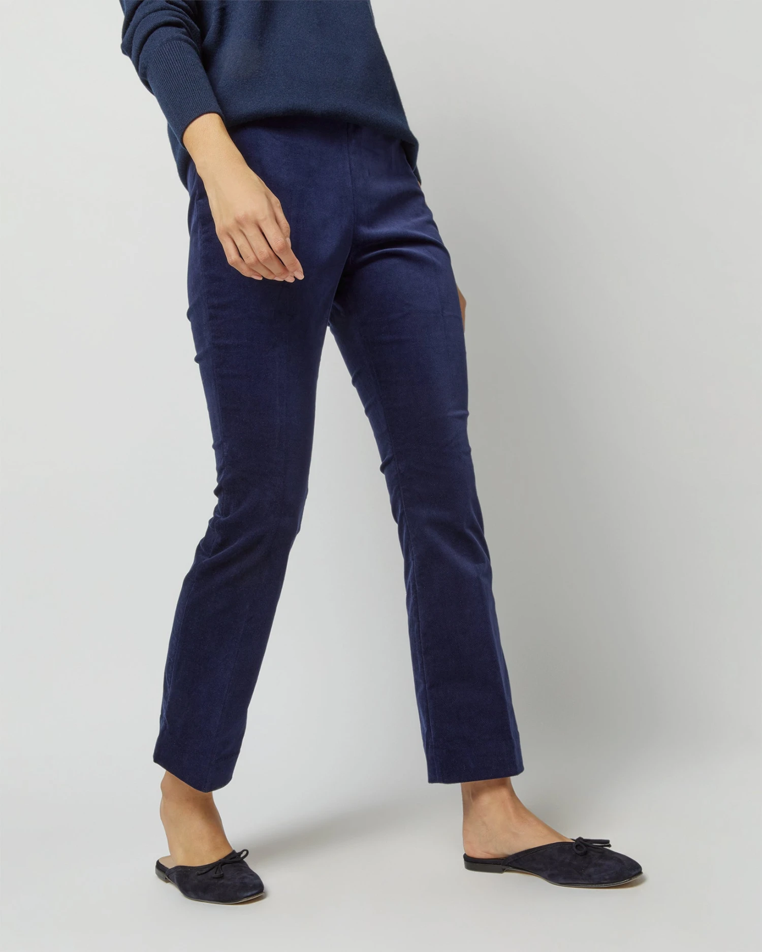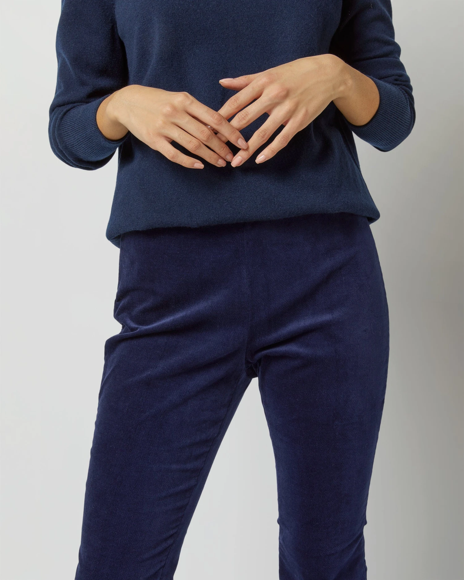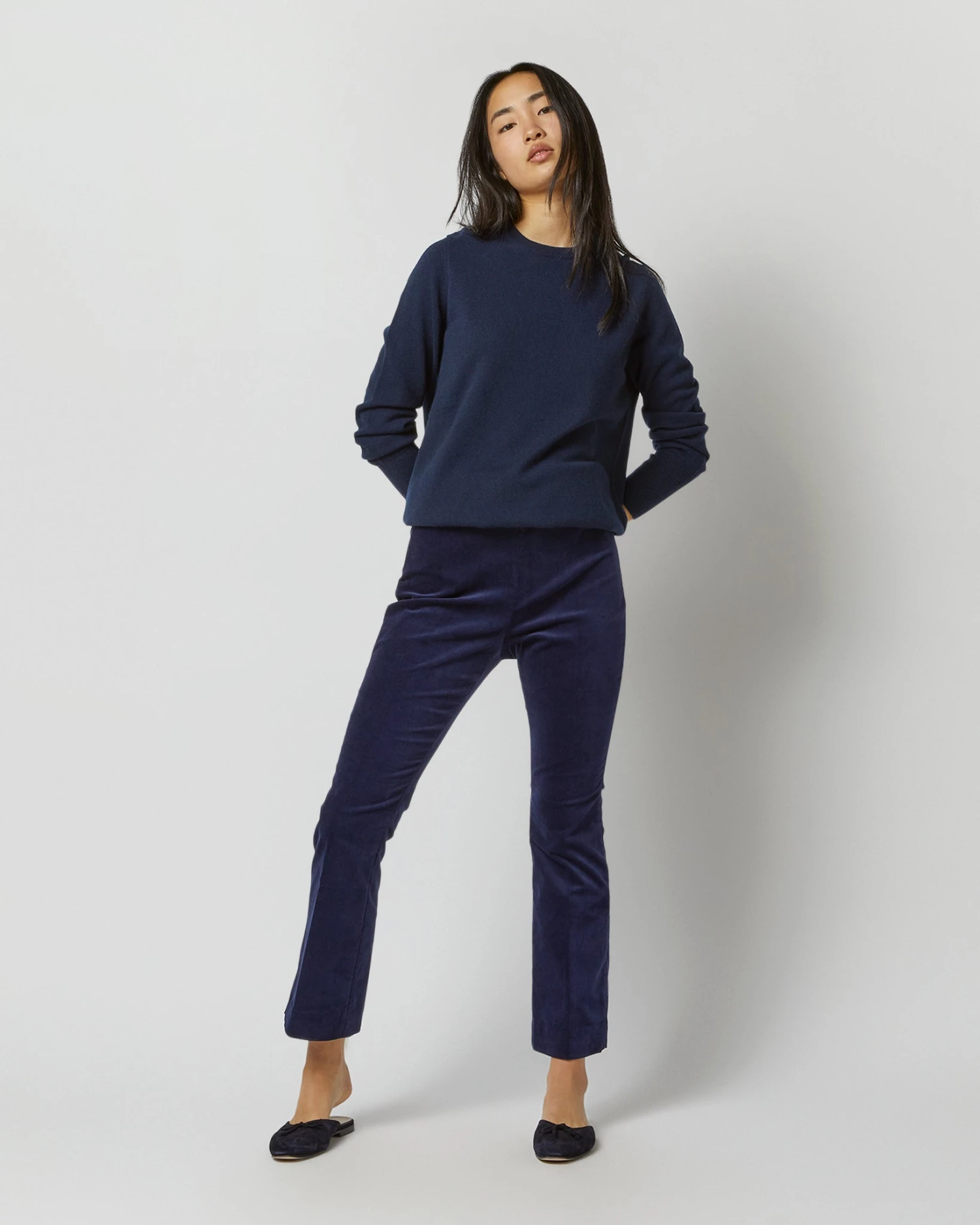 Faye Flare Cropped Pant In Navy Stretch Velveteen