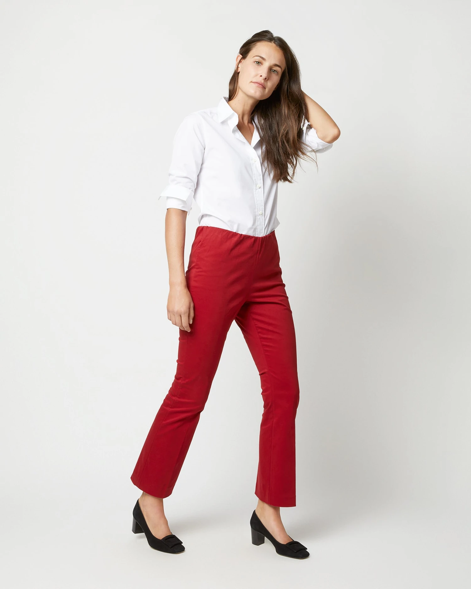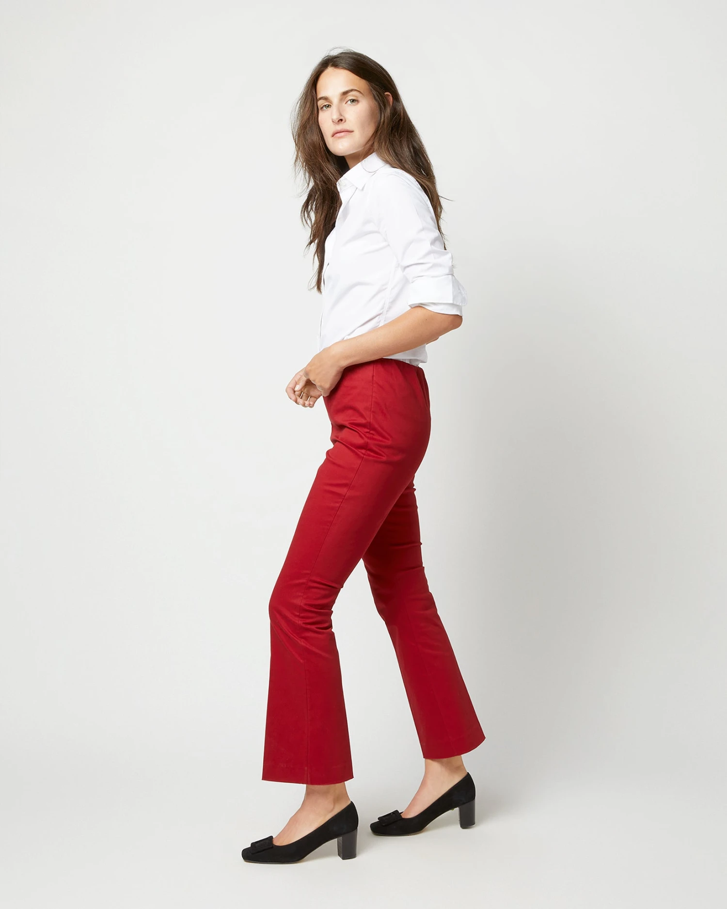 Faye Flare Cropped Pant In Red Stretch Sateen