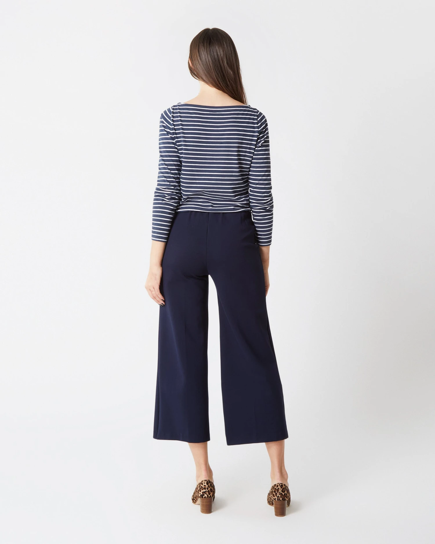 Minimal, clean, and quietly chic: our Faye shape is a refined pant without all the fuss. It just pulls on, with an elastic waist that doesn’t scream “elastic waist” and a wide, cropped leg. The fabric is a lush, stretchy ponte knit that holds you in a bit and feels really good against the skin. Add a sweater and a scarf for an instant plane (or anywhere else) outfit.