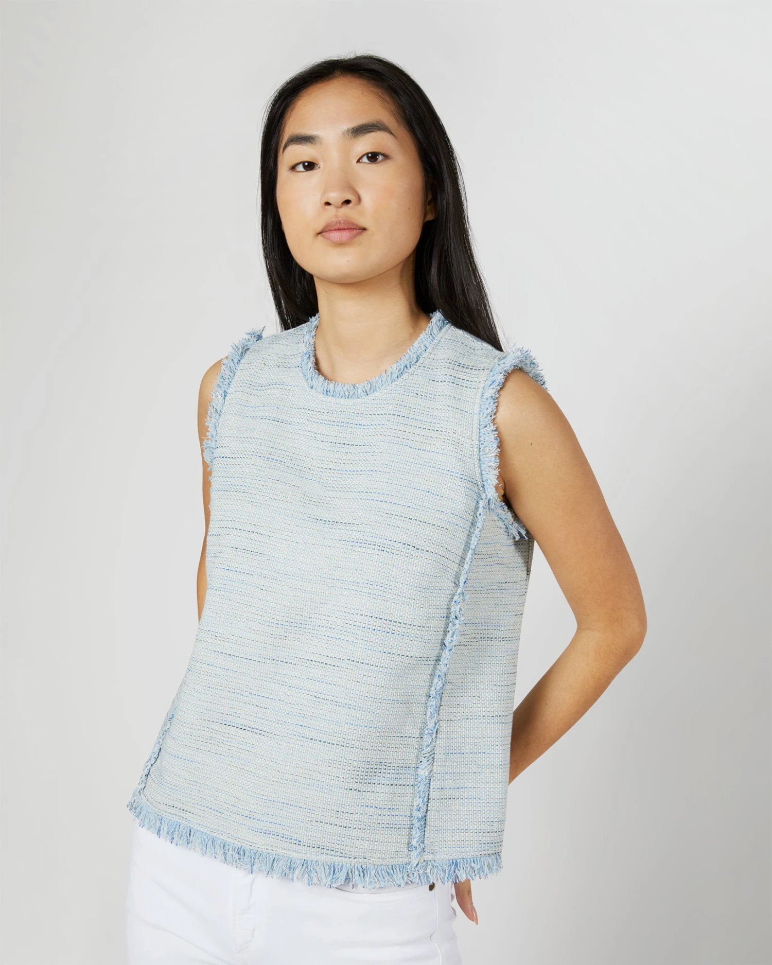 Your next day-to-night, goes-with-everything top, made from a lightweight tweed in the prettiest shade of sky blue. A perfect companion to your favorite white jeans.