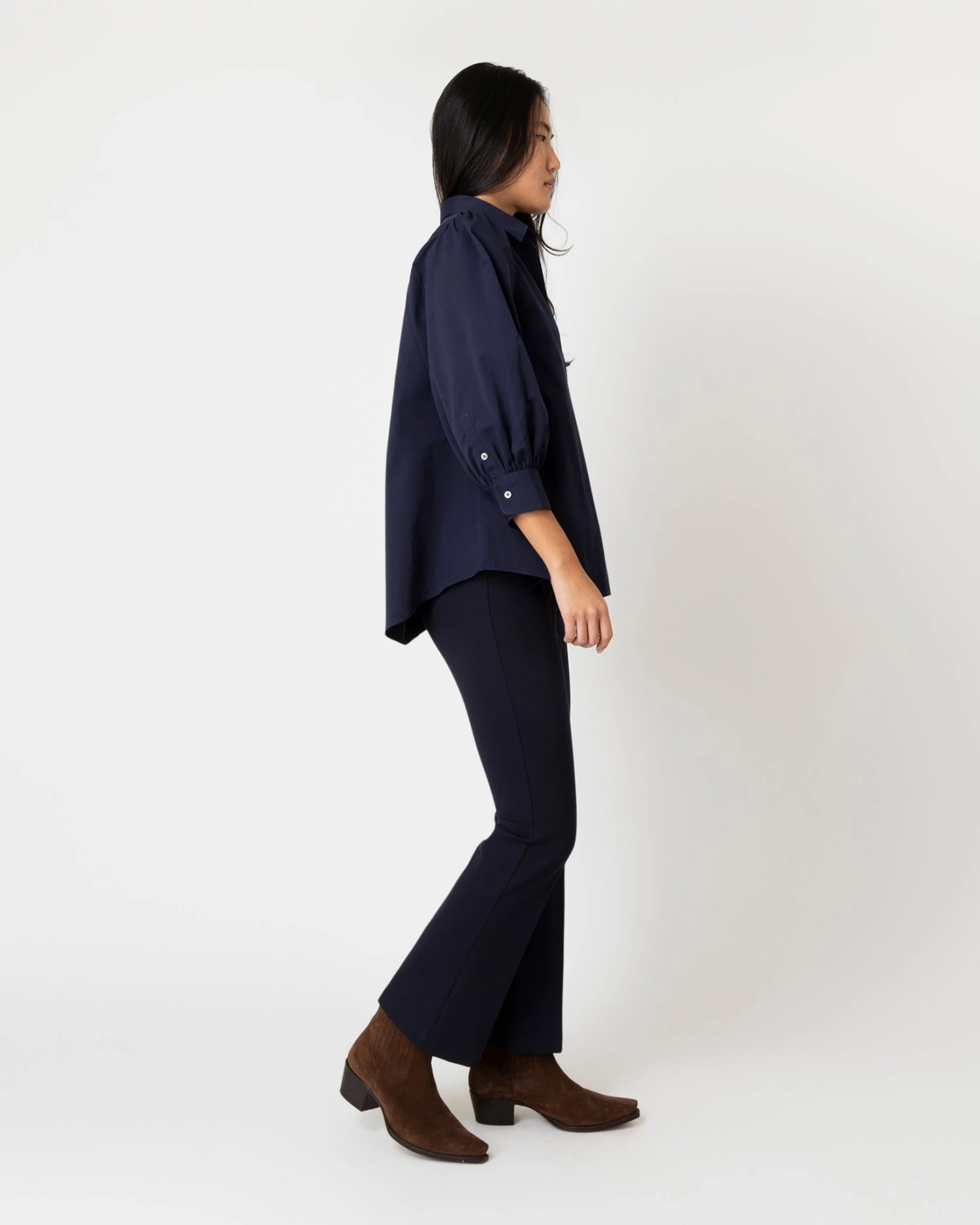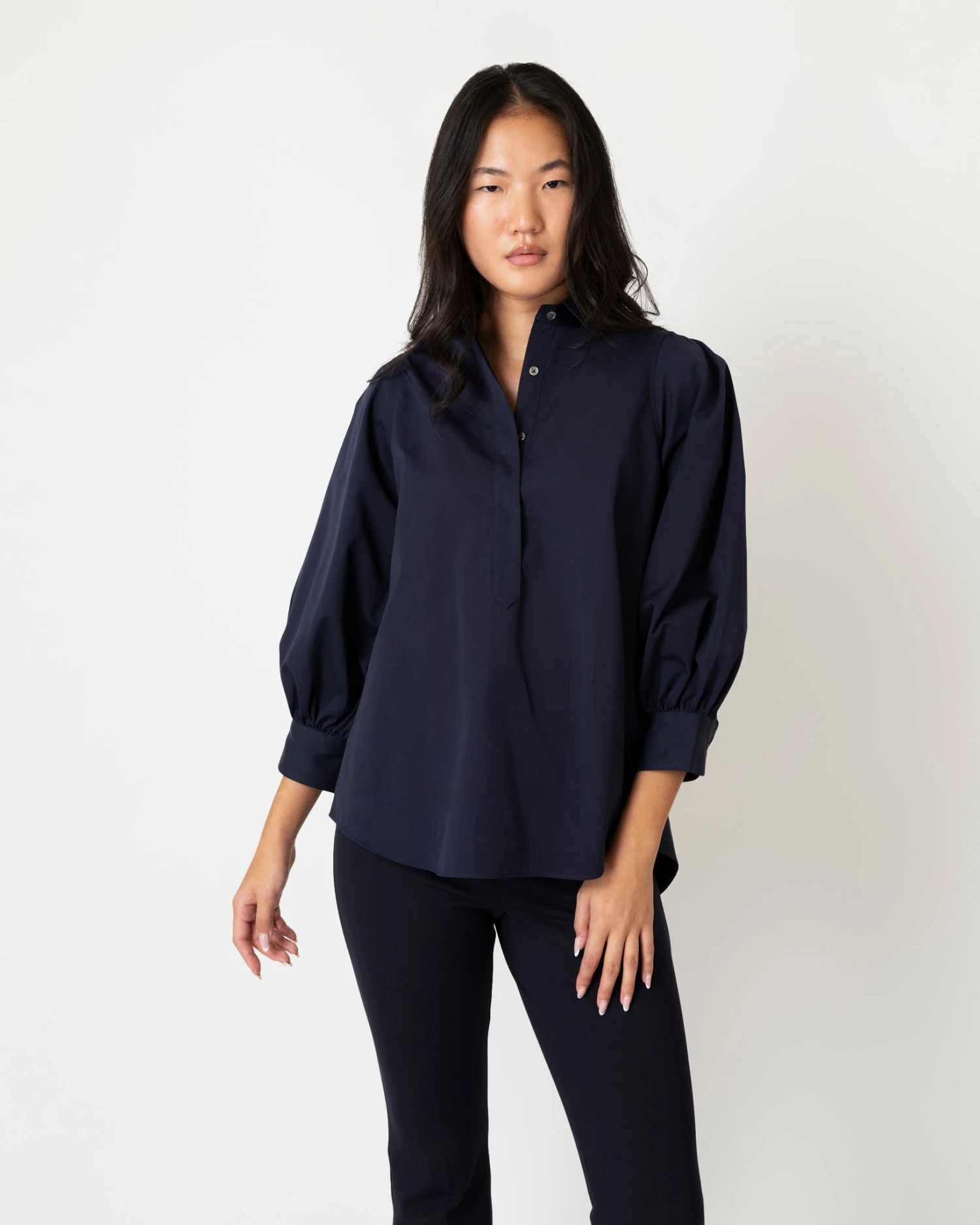 Geraldine Popover Shirt In Navy Poplin