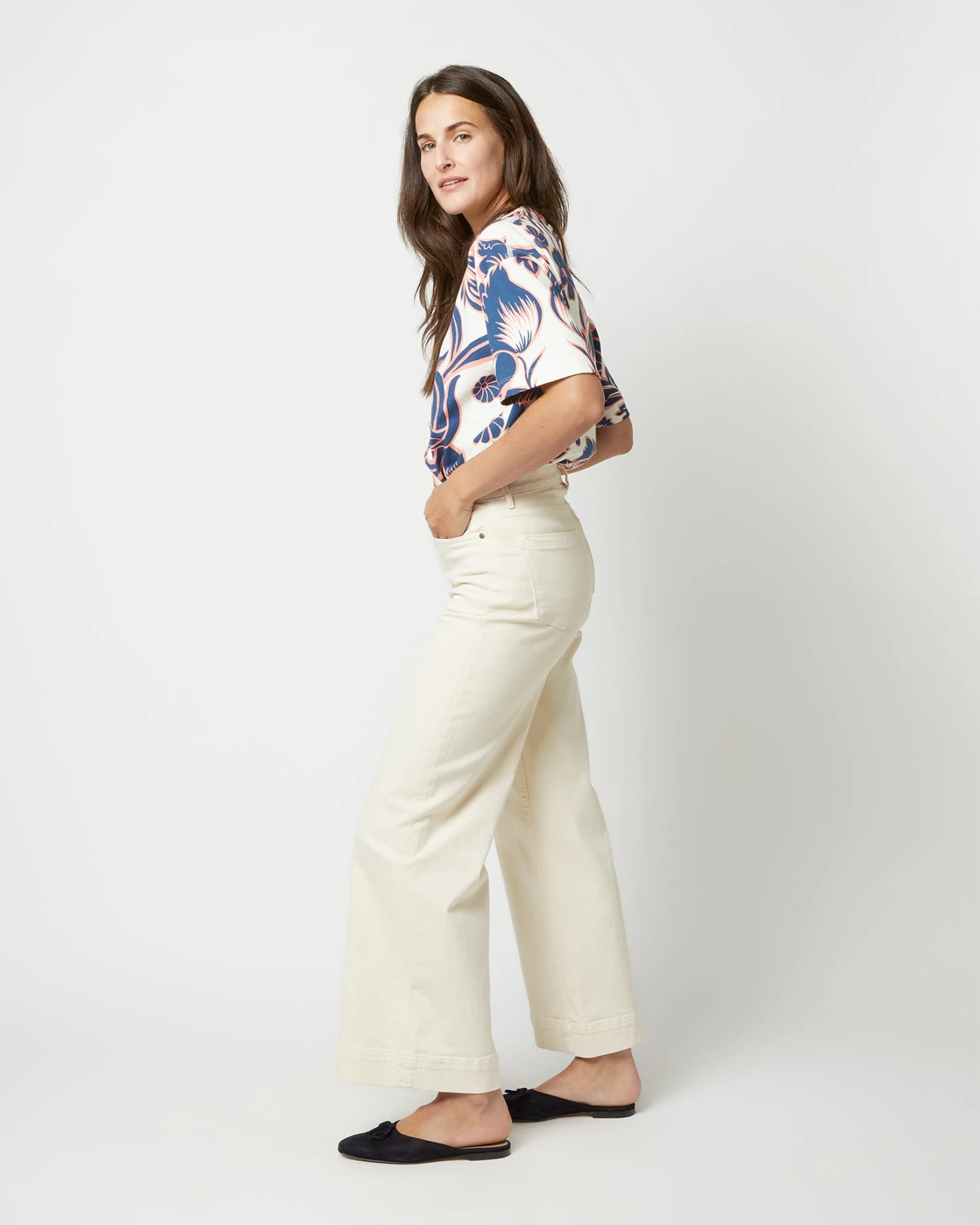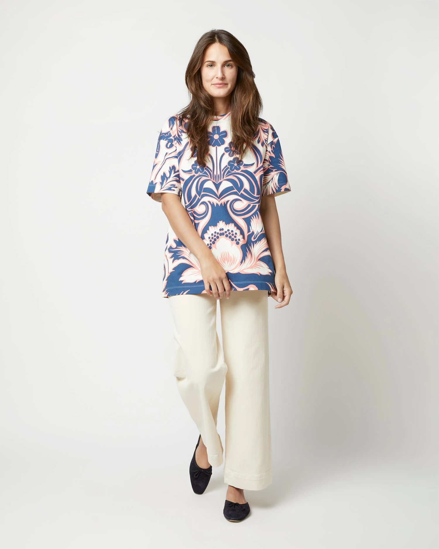 Milan-based La DoubleJ makes party-ready skirts and dresses in reissued vintage fabrics, “distilled through a lens of pure joy, eye-popping print and love of all things maximal.” Sounds about right! This is an easy (but super special) t-shirt made up in soft cotton jersey. It has a ribbed collar and a relaxed fit. Dress it up, dress it down, or go head-to-toe and pair it with the coordinating (but intentionally mismatched) pencil skirt.