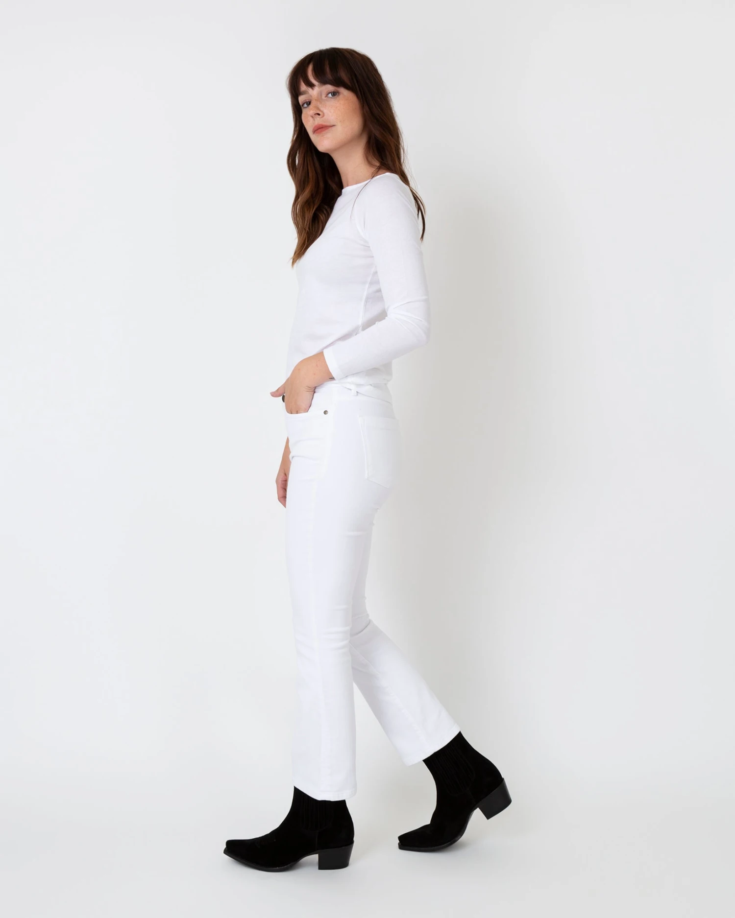 Our boatneck tee is a real closet MVP. It’s refined enough to dress up with a blazer, but also trim enough to layer under an oversized button-down, tuck into a full skirt, or wear with every pair of jeans you own. We could go on, but you get it. This one is made of combed Peruvian pima cotton that’s not too tissuey and not too thick.