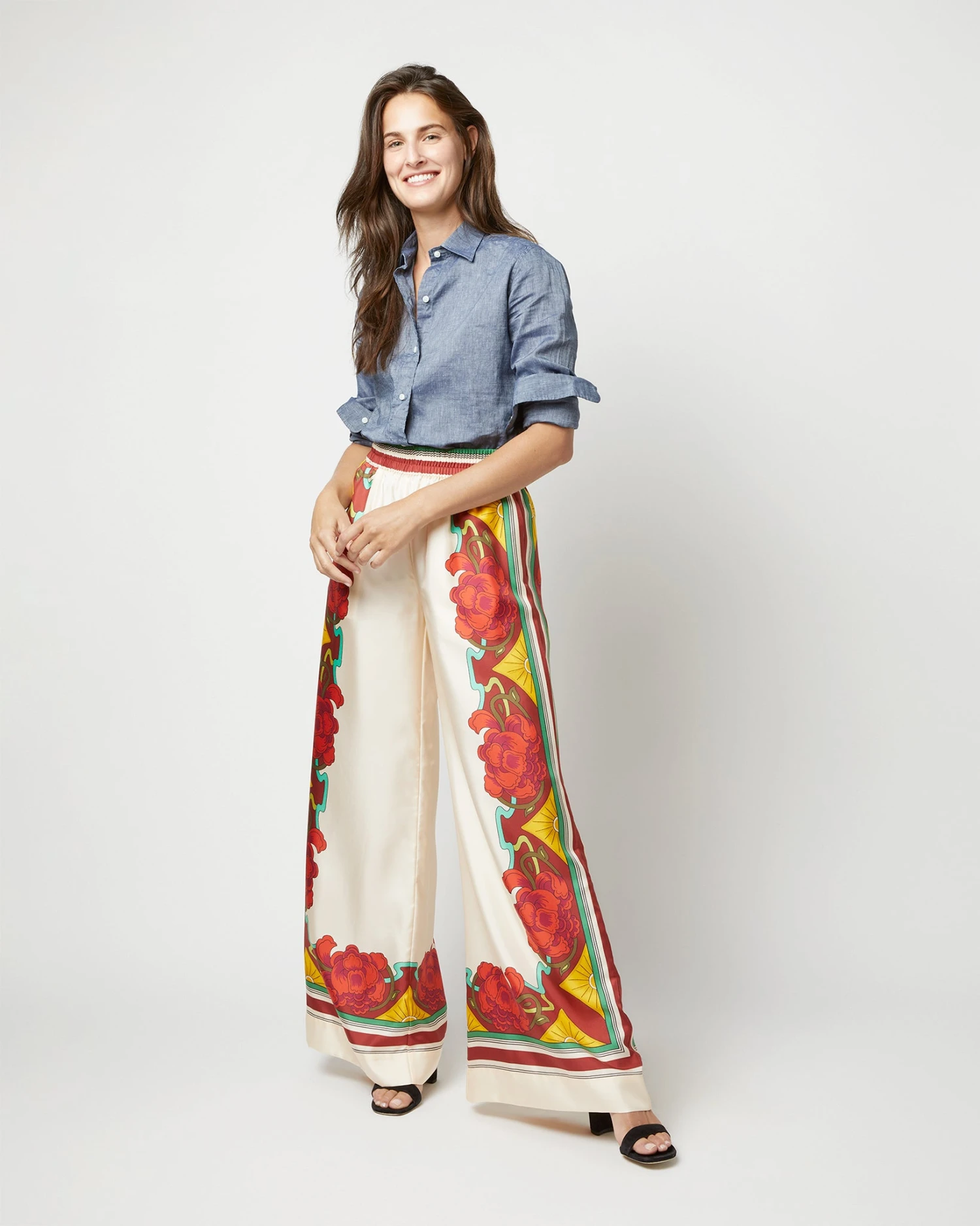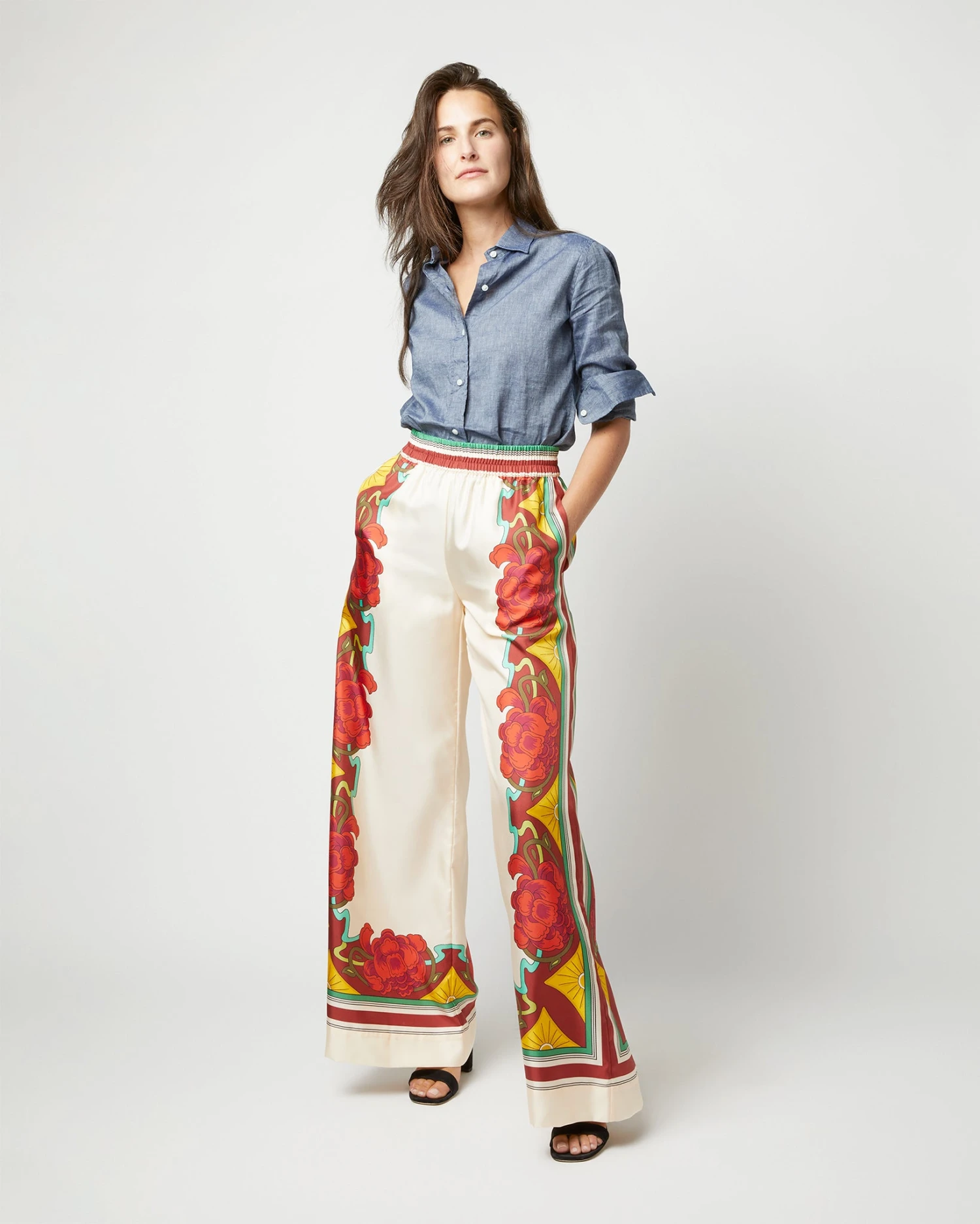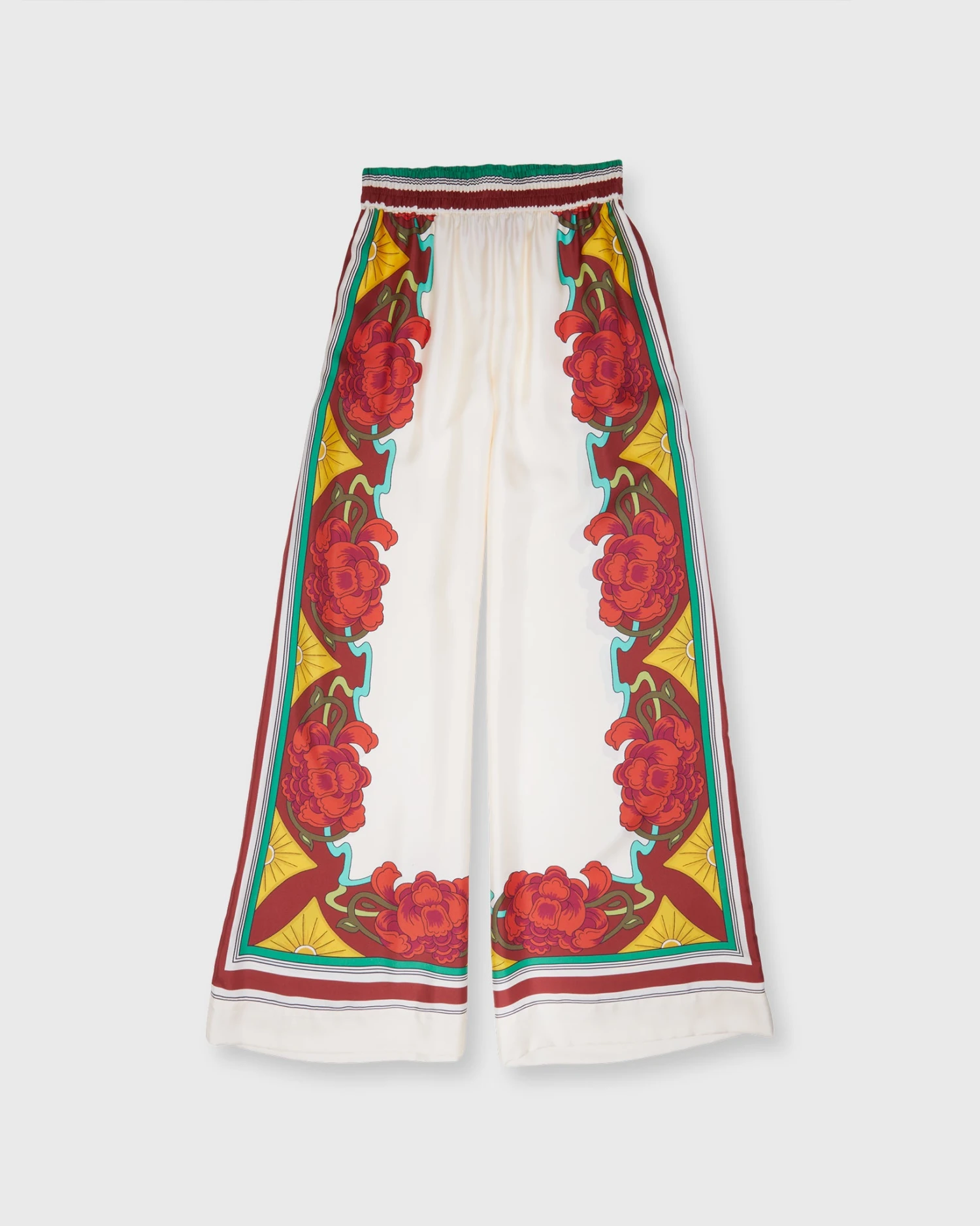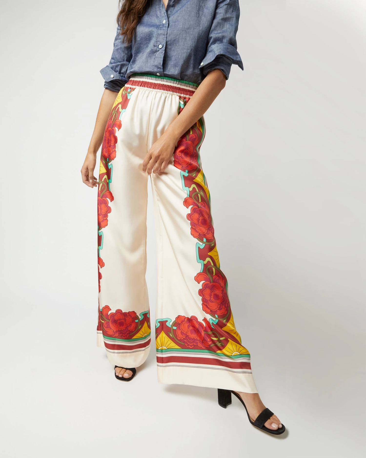 Palazzo Pant In Taormina Placée Ivory Twill Silk
