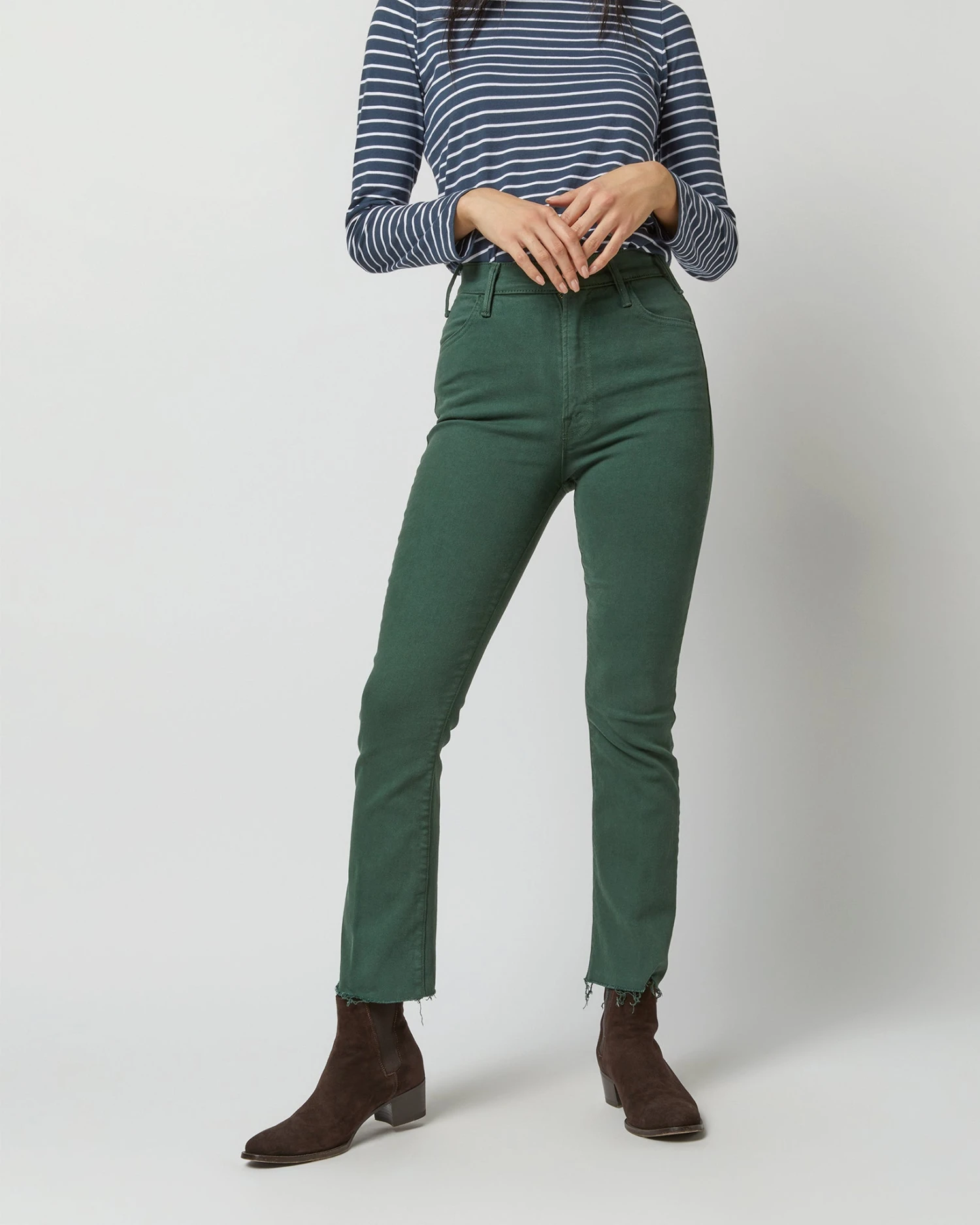 LA-based MOTHER makes the softest, stretchiest jeans around — and they all have clever, memorable names to boot. Like the Hustler: a cropped bootcut shape with a super-high waist and clean hems. This particular pair is made up in a forest-green cotton (don’t let the color name fool you) with the perfect touch of stretch.