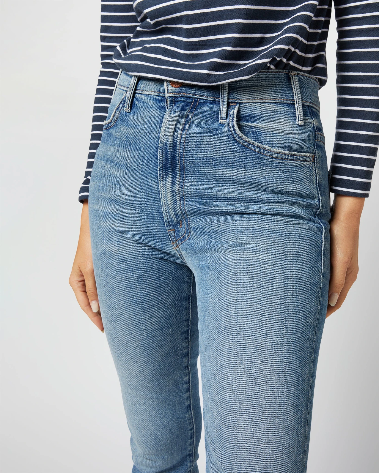 LA-based MOTHER makes the softest, stretchiest jeans around — and they all have clever, memorable names to boot. Like the Hustler: a cropped bootcut shape with a super-high waist and clean hems. This particular pair is made up in a mid-blue wash with a touch of fading and distressing for a perfectly lived-in look.