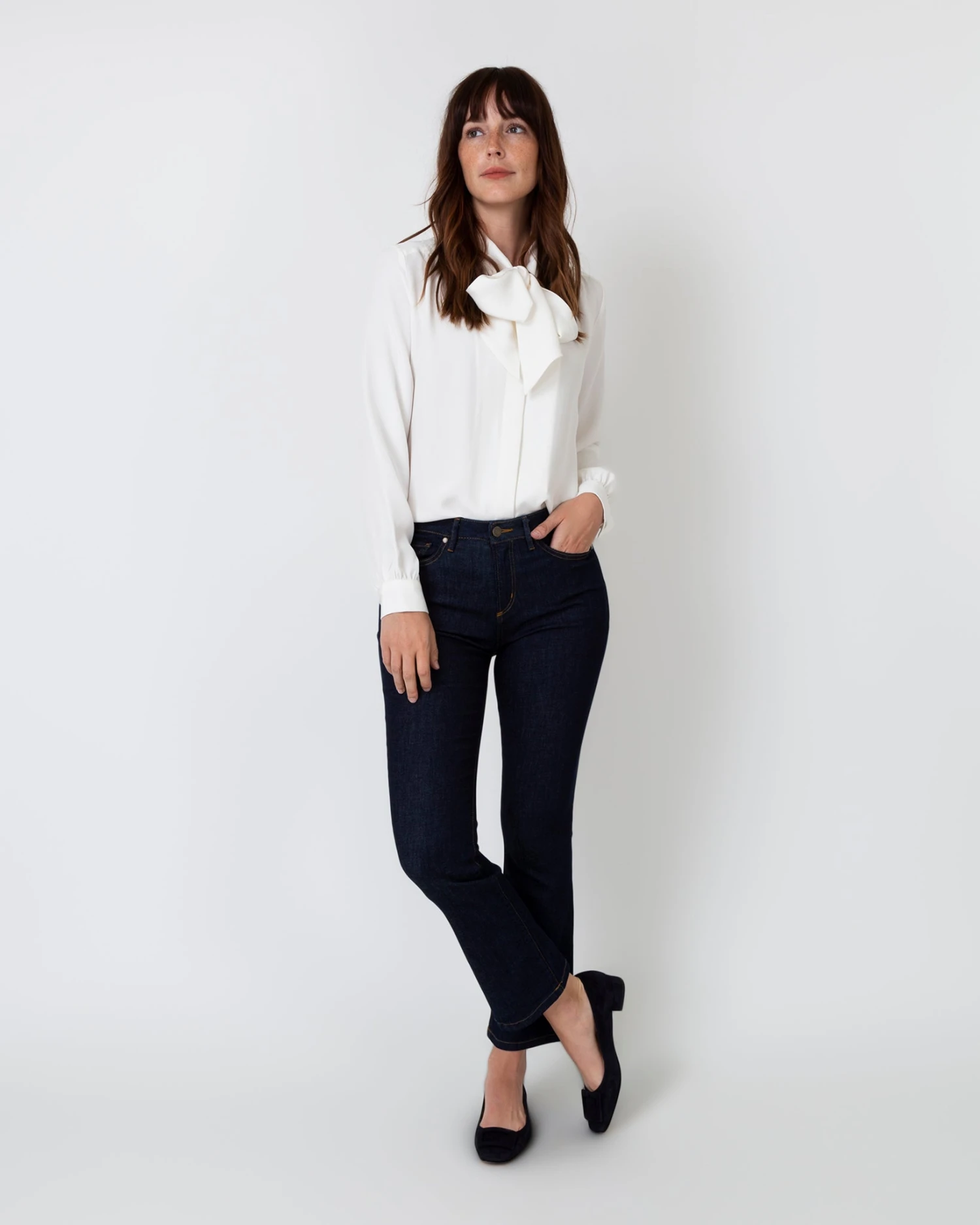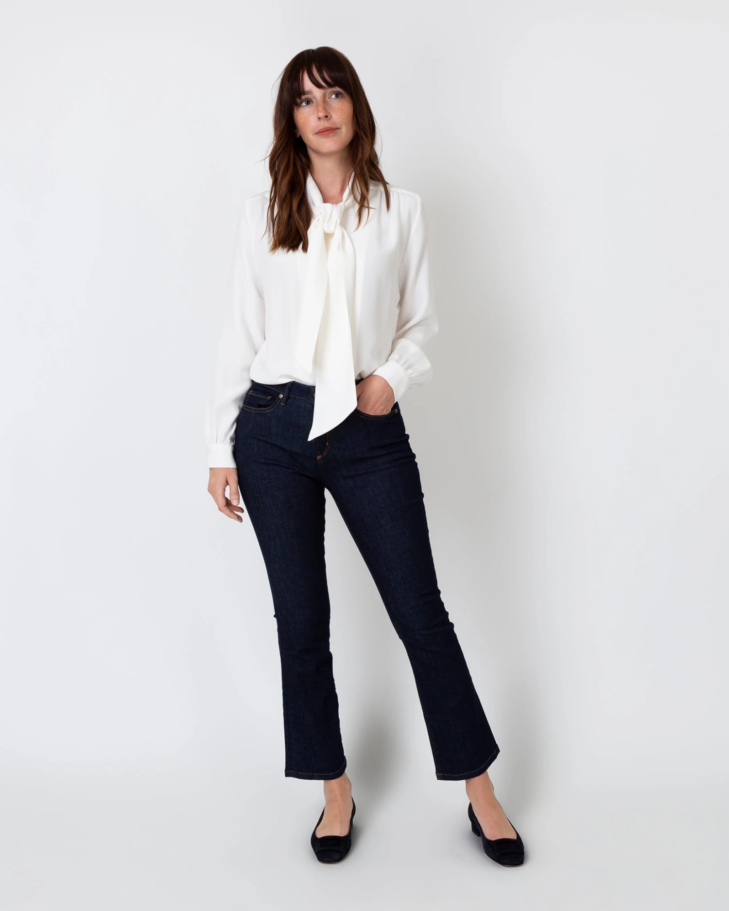 We’ve been making (and wearing) this blouse since 2013 for a reason. It’s the kind of piece that instantly elevates the rest of your look, with a pussy-bow silhouette that can be fully tied at the neck or just loosely knotted. Simple, elegant, easy to wear. And the fabric is a dream: a luxe, weighty 4ply silk with a finish that’s lustrous but not too shiny. One of our forever favorites.