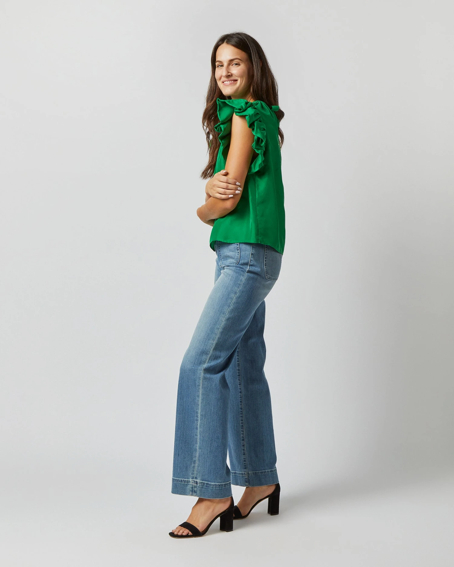 In-store favorite Ulla Johnson makes feminine, bohemian pieces that are heavy on handcraft and special details. The Iren silhouette feels quintessentially UJ with voluminous flutter sleeves and a romantic tie at the back of the neck. It’s made of silk taffeta in a beautifully saturated shade of emerald green. Wear it on its own or go for the full look with the matching skirt