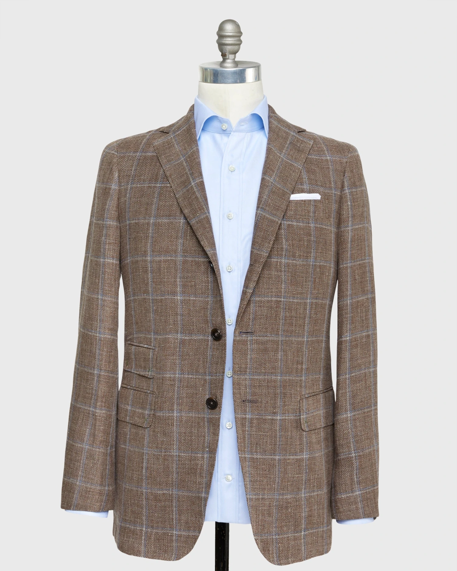 SKU: C2HVC 7315676823738 Category: Blazer Tags: LineDescr_Mens, S23 Web Launch, Season_S23, WebColor_Brown Mix/Blue/Bone Windowpane Hopsack