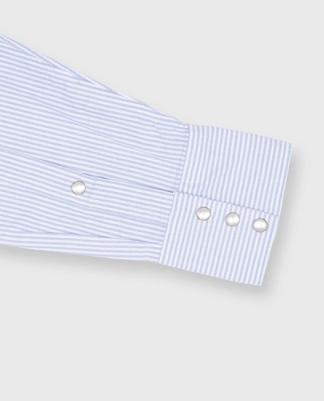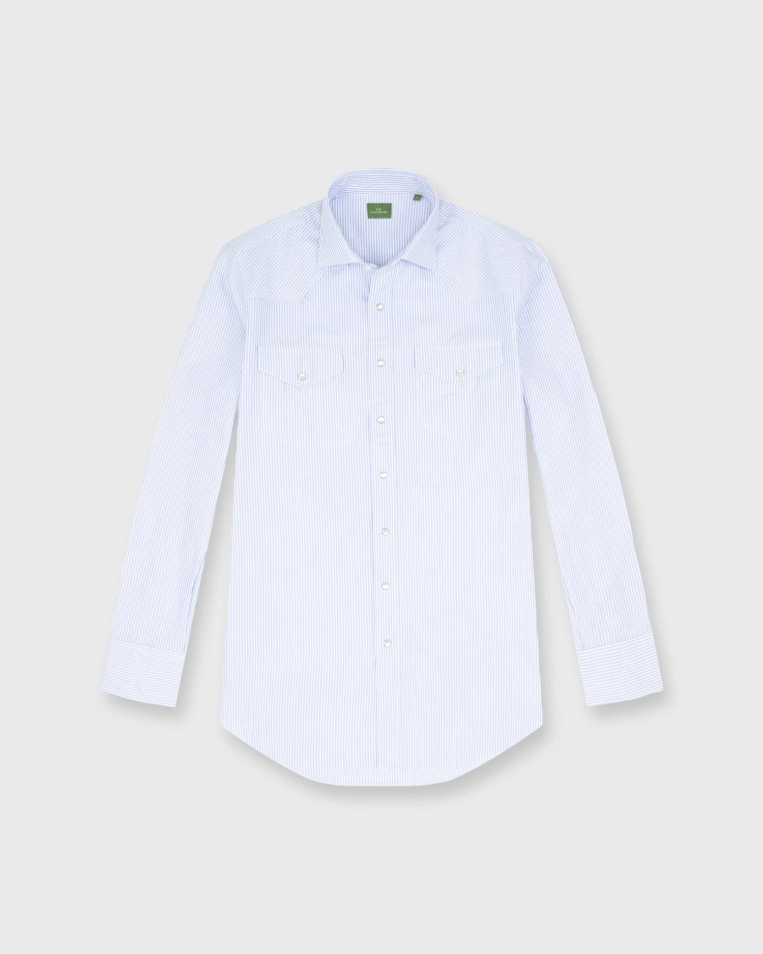 A rugged, just-Western-enough riff on a classic OCBD. Sid’s been wearing this shirt for ten years and counting… we love the contrast of a university stripe with pearl snaps. Unexpected in a good way. There’s also a pointed yoke, double pockets, a triple-snap cuff, and a shorter length designed to wear untucked. (Plus the same single-needle stitching, 22 stitches/inch, and flat-felled seams of all of our shirts.)